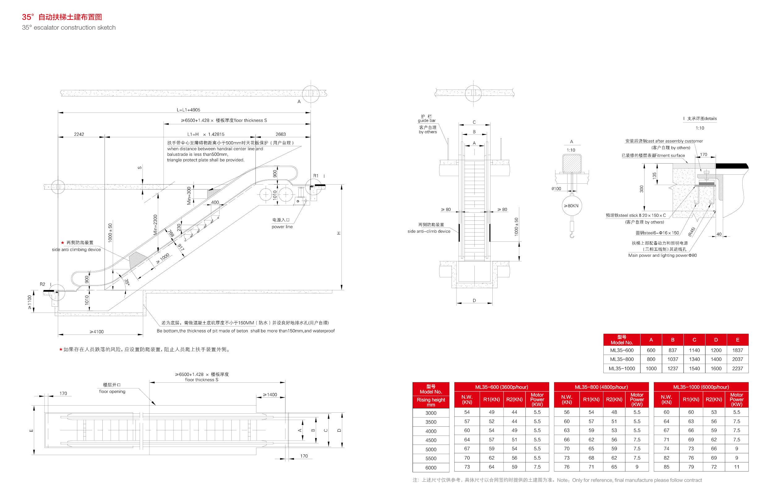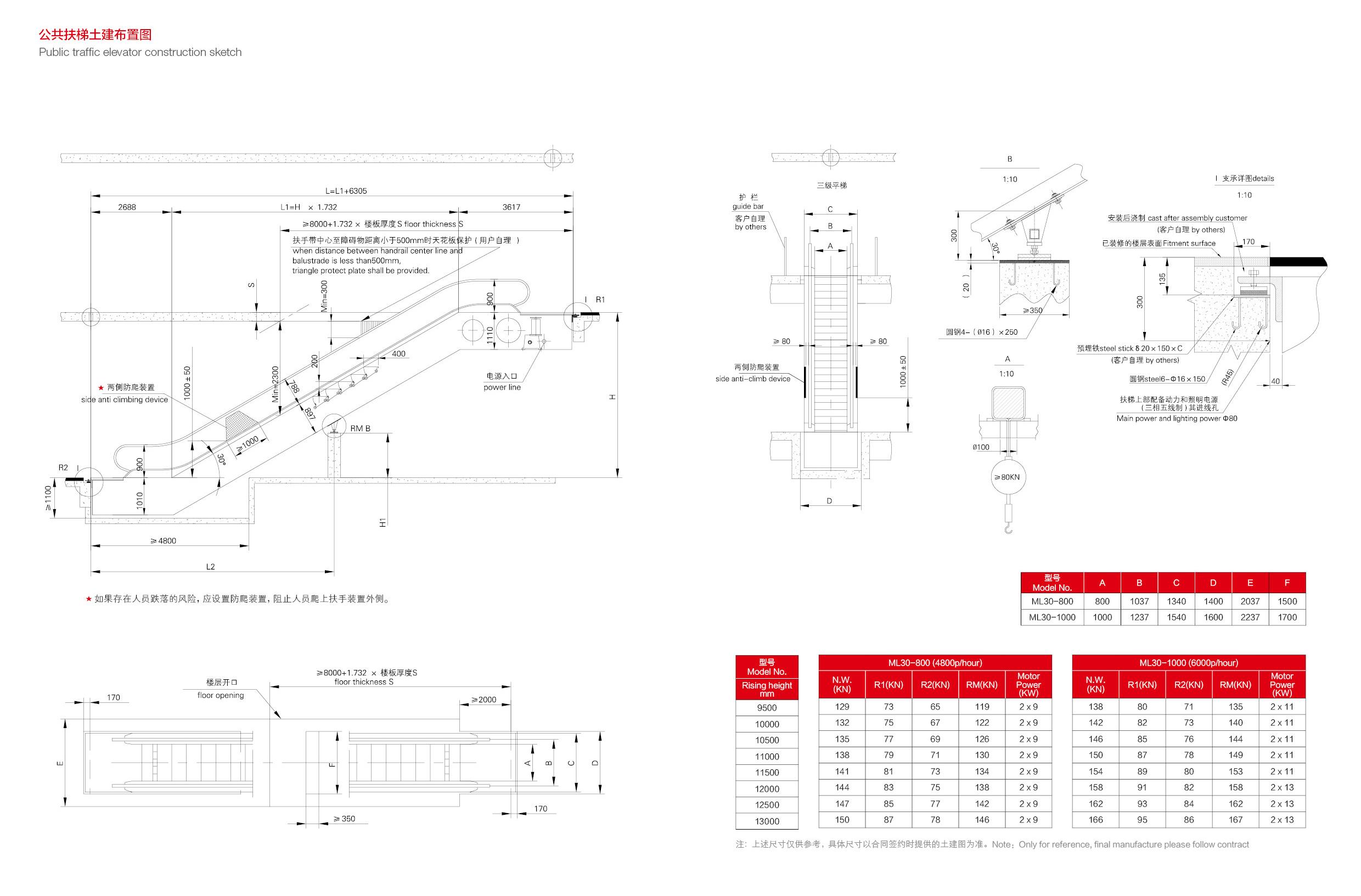 To ensure efficient integration between equipment and building structures, we provide complete public escalator civil engineering layout drawings and technical support, including: