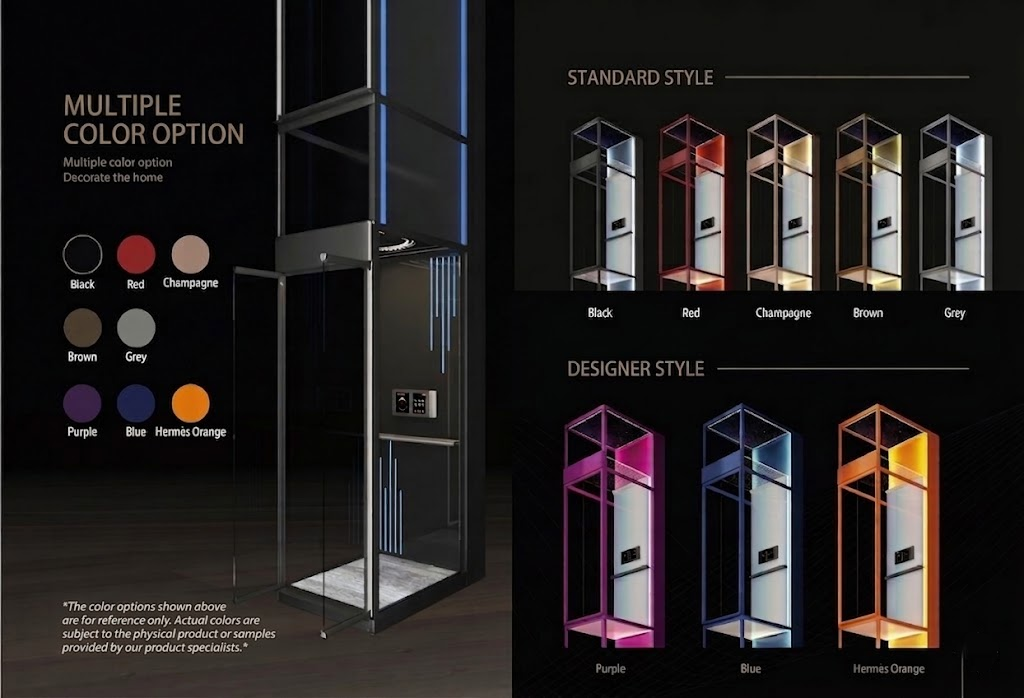 This is not just an elevator; it's a piece of art in your home. We insist on customized solutions to create a premium space, offering a variety of shaft profiles and color options to seamlessly blend into your interior decor and enhance your home scenery.