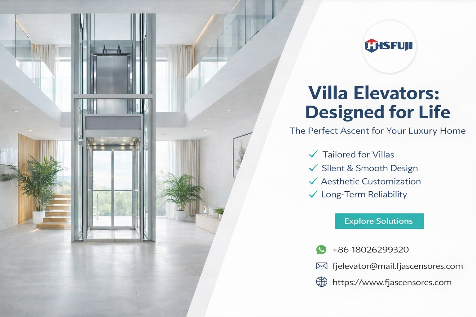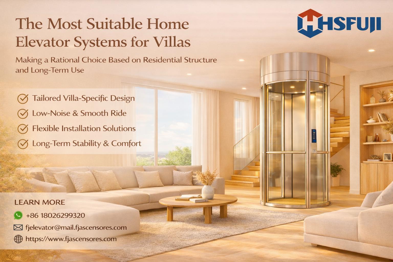 Within HSFUJI home elevator solutions, villa projects are always approached with residential living experience as the core focus. By carefully evaluating building structure, family composition, and future usage needs, customized elevator systems are developed to ensure safety, stability, and seamless integration into everyday villa life.